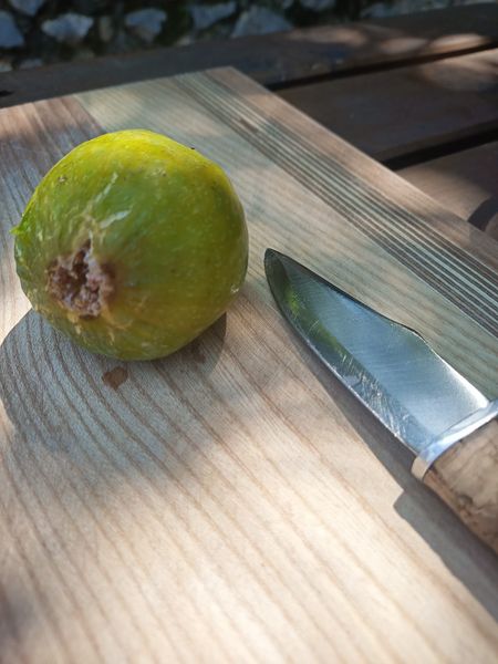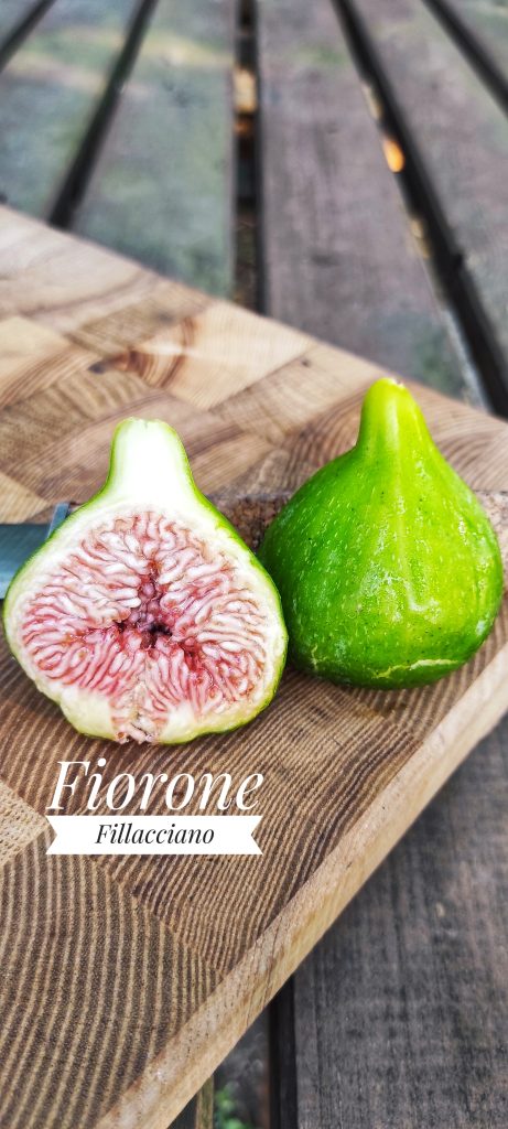 I migliori “fioroni” della nostra collezione. I frutti (in verità sono fiori) del fico di Fallacciano sono di due tipi poiché la pianta è bifera: i “fioroni” (brebas), detti Fallacciani, vengono prodotti su rami di due anni; quelli forniti, detti in dialetto Ritornelli, si producono su rami di un anno alle ascelle delle foglie. Il fiorone, o Fallacciano, è un siconio (“falso frutto”) di colore verde e costoluto, dalla forma piriforme quasi a forma di fiasco, all’estremità del quale è presente un ostiolo (piccola apertura tipica di alcuni tessuti vegetali ). La buccia è sottile e poco elastica, la polpa piena, omogenea e zuccherina è punteggiata di otrioli rosa e non presenta acheni a causa della partenocarpia. Il peso del frutto varia da 70 a 100 g. La maturazione è graduale, dura circa tre settimane a partire dalla seconda decade di luglio, conferendo al prodotto Fallacciano la caratteristica tipica di un frutto tardivo. Le colture principali, dette Tornanelli, sono più piccole e di forma sferica, non hanno mai avuto valore commerciale e, in passato, il loro utilizzo era destinato all’alimentazione dei maiali. La maturazione inizia a metà settembre e si protrae per gran parte dell’autunno